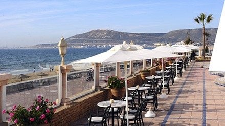 Rebuilt in 1960s “modernist”style, it has all the trappings of a town centre, with office blocks, a post office, town hall (Hôtel de Ville), municipal market and banks. Agadir’s beach is as good as they come: a wide expanse of fine sand, which extends an impressive distance to the south of the town, is swept each morning and patrolled by mounted police.